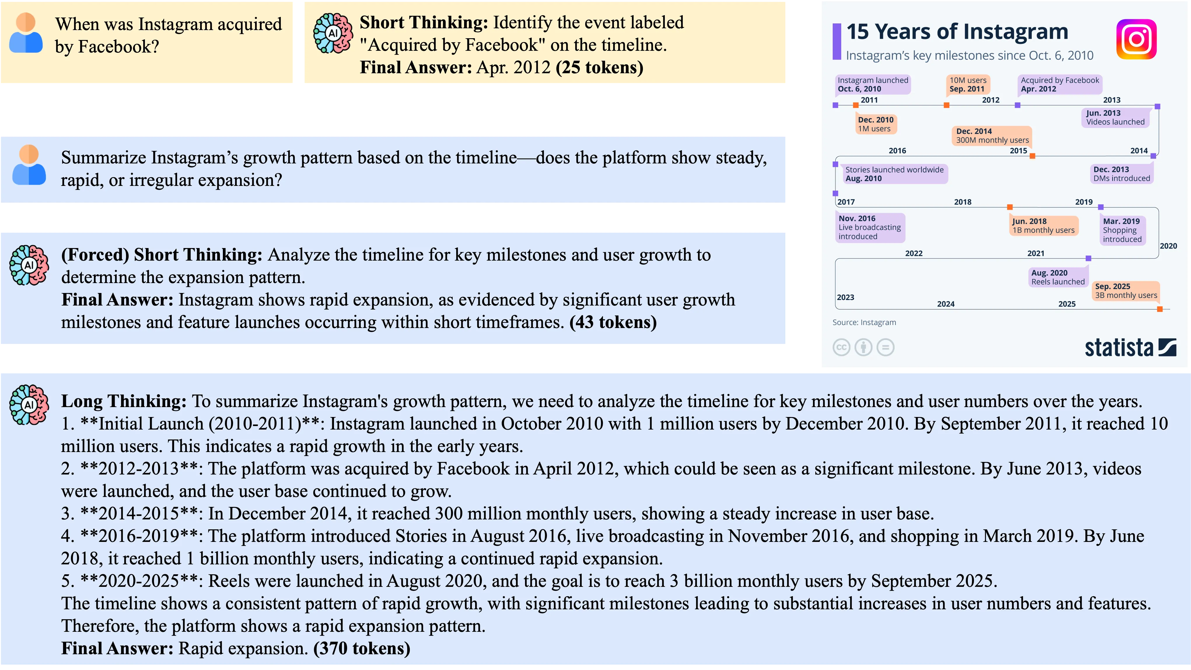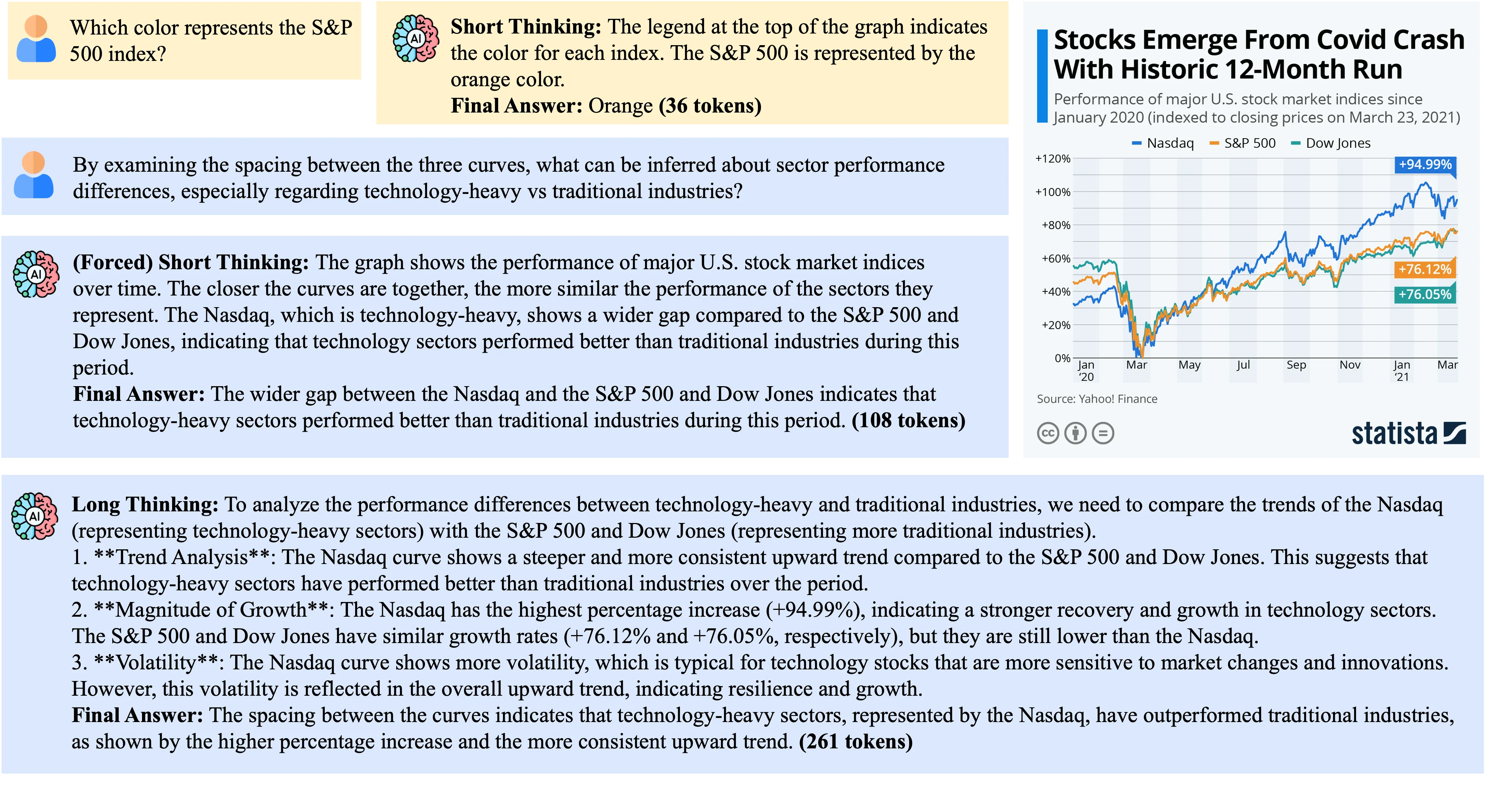 Crucially, the human mind does not choose these systems randomly. We switch between them depending on the complexity of the task, saving effort where we can and investing it where we must. This simple efficiency principle allows humans to think both quickly and carefully without conscious control. If visual language models are meant to reason like humans, they should adopt the same principle—thinking fast on simple problems and slowing down only when deeper reasoning is truly needed.